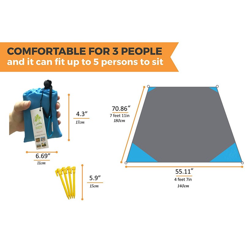 - ACCESSORIES INCLUDED-The HZJY blanket Included a small pouch,Carabiner and four Corner Pockets and comes with 4 free stakes to anchor blanket down on windy days.