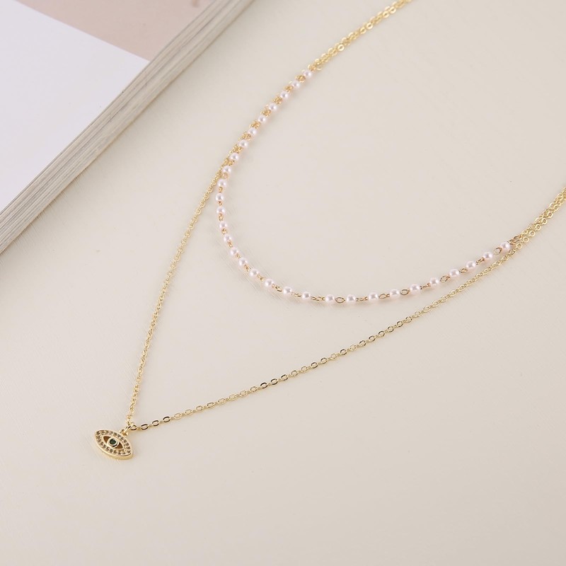 Elevate your style with the gold layered Evil Eye necklace – a timeless statement of grace and beauty.