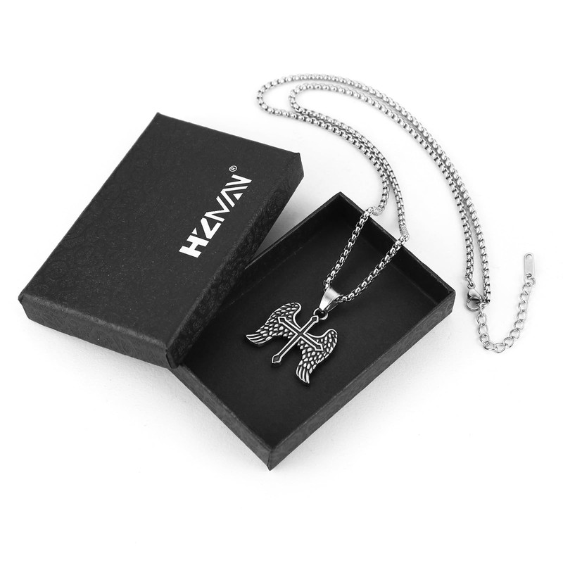 HZMAN Stainless Steel Archangel ST. Michael Wing with Cross Necklace for Men