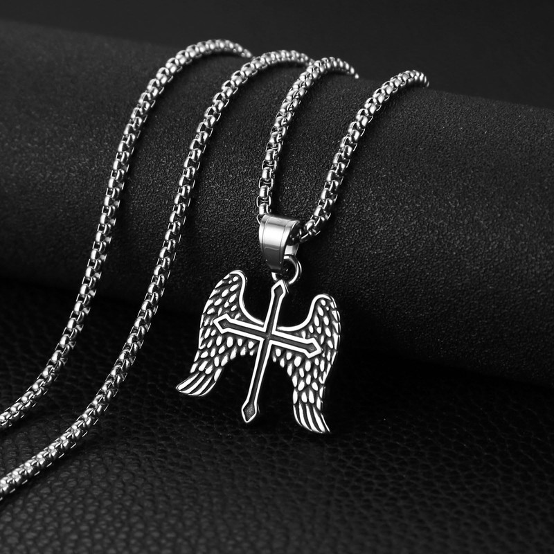 • Our Stainless Steel Archangel St. Michael Wing with Cross Necklace is designed for the modern man, seamlessly blending faith and fashion into one striking accessory that elevates your style
