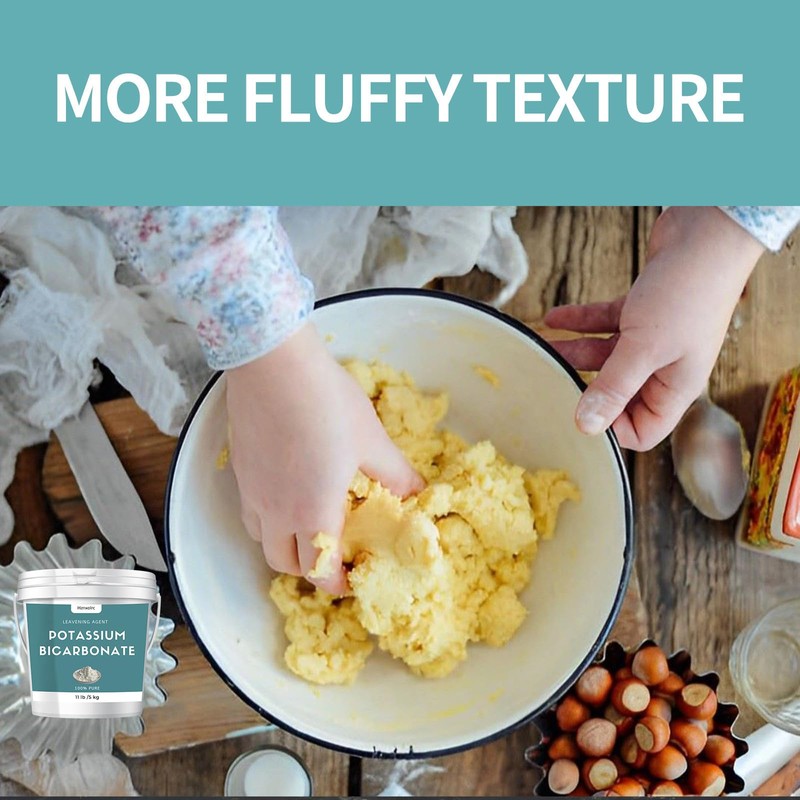 - IMPROVED TEXTURE: Potassium bicarbonate powder food grade is a highly effective leavening agent that aids in the leavening of baked goods and contributing to the rising and light texture of baked goods.