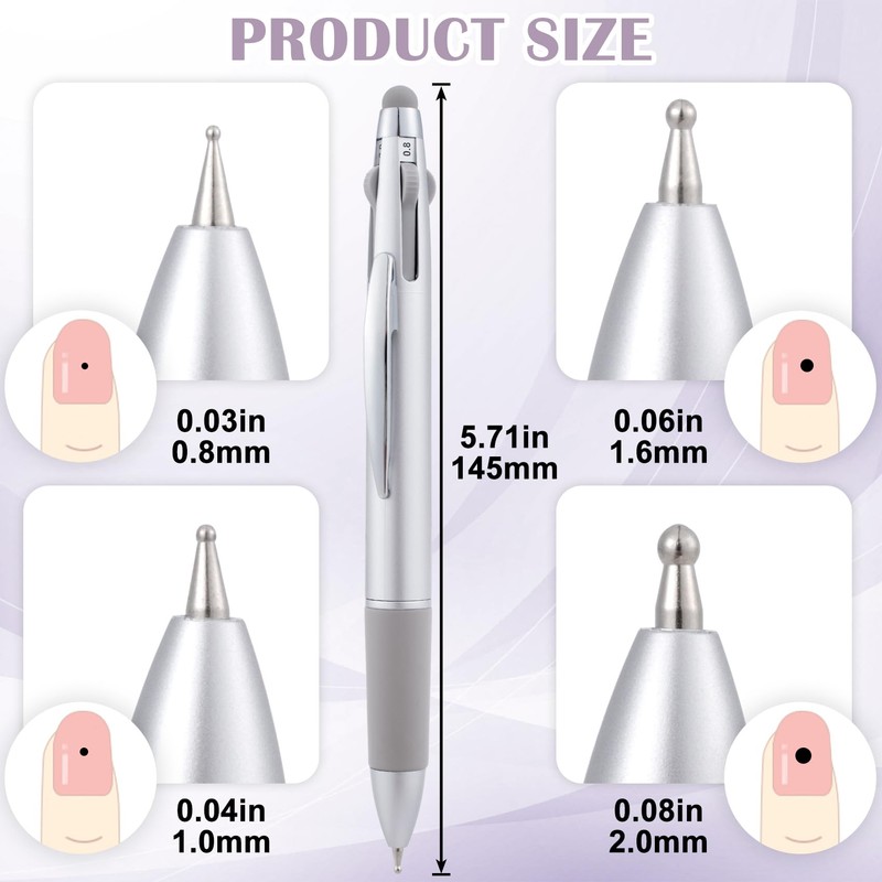 - 4 Tip Size: These nail dotting tools come with 4 tip sizes: 0.8mm, 1.0mm, 1.6mm, 2mm.