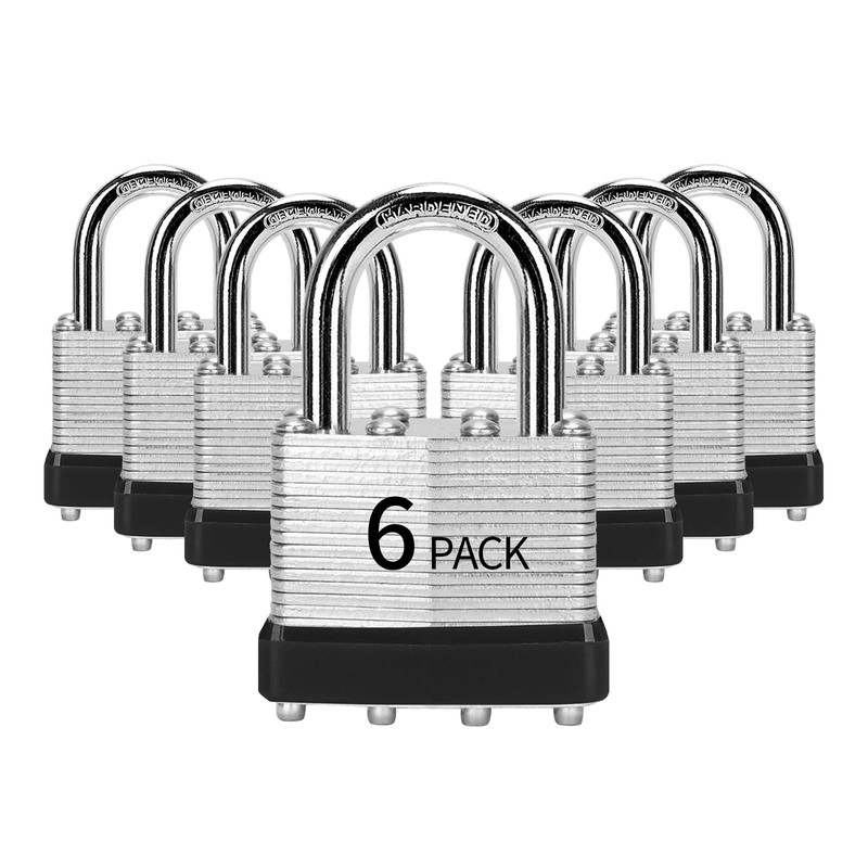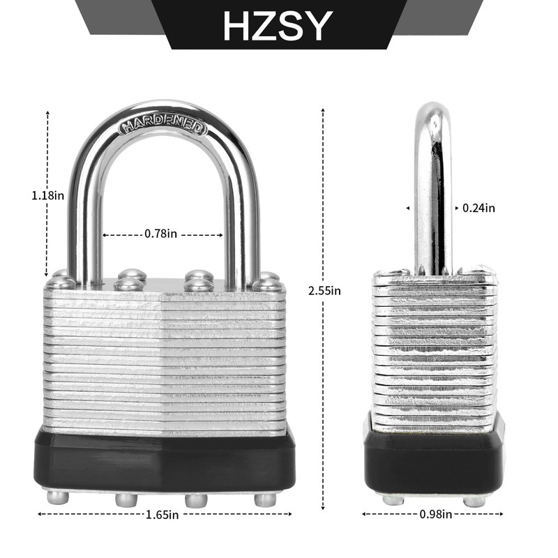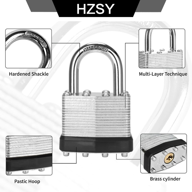- Keyed alike laminated steel padlocks with normal shackle, 1-9/16"(40mm) wide body, key lock features a laminated steel body and hardened shackle for maximum cut resistance.