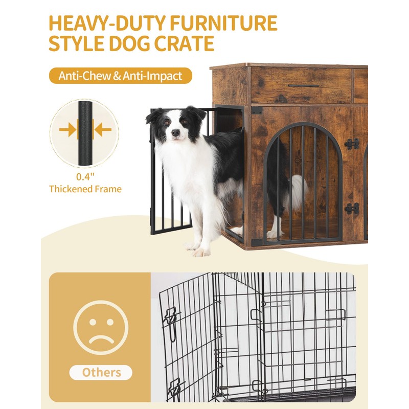- Anti-Chew & Anti-Escape: This dog crate uses 0.4" double welding points metal bar and thickened engineered wood, 2" of clearance between the 2 bars does not give dogs a chance to escape. Each door has 2 locks, providing multiple layers of protection