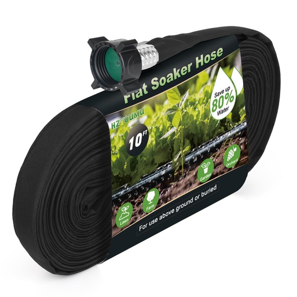HZYOUMU Flat Soaker Hose 10FT for Efficient Watering Tree - Durable Double Layer Design for Gardens, Lawns, and Vegetable Fields (10FT)