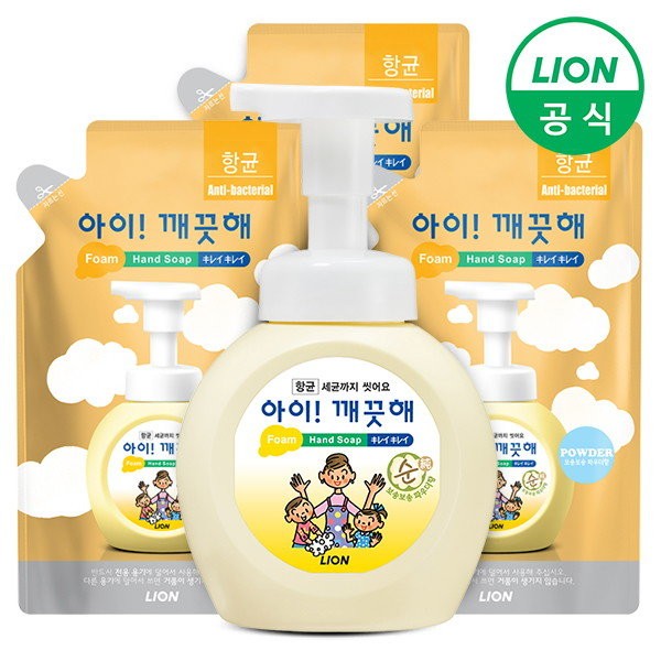 I'm Clean [LION] [CJ] I'm Clean foam type large capacity 490ml container + 450mlx3 (lemon/green grape/pure), container 4900ml+450mlx3 (pure) / 아이깨끗해 [LION] [CJ ]아이깨끗해 거품형 대용량 490ml용기+450mlx3개 (레몬/청포도/순), 용기4900ml+450mlx3개(순)