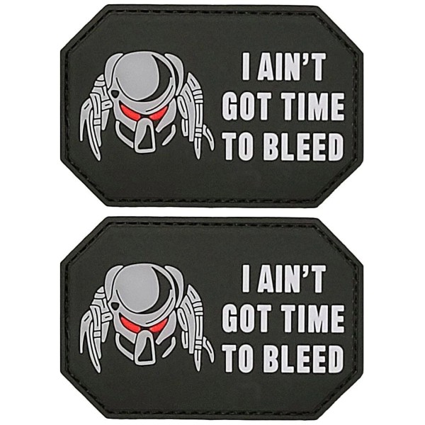 I AIN'T GOT TIME BLEED PREDATOR ALIEN PVC RUBBER PATCH | 2PC HOOK BACK 3"x2"