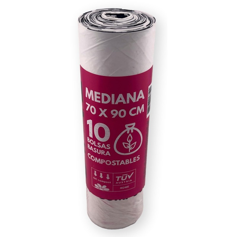 I Am Not Plastic PL148010 Medium Garbage Bags, 10 Bags per Roll, White; 70 x 90 cms (27.5" x 35.4"); Backyard Compostable; Plastic-free