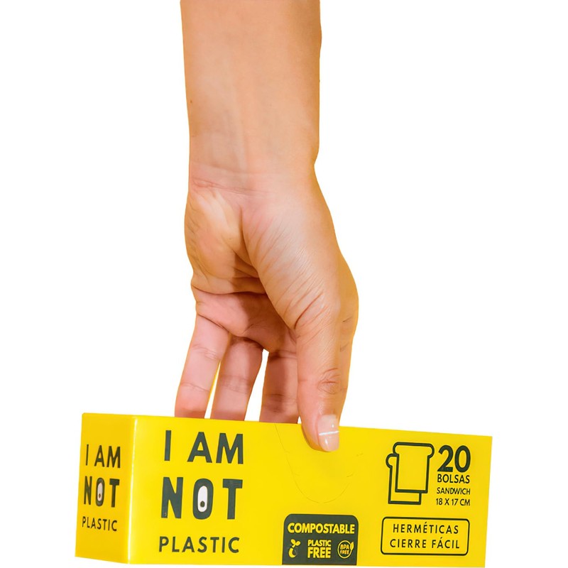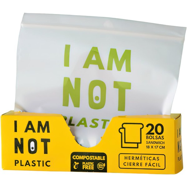 I Am Not Plastic ST144020 Pack of 20 Hermetic Bags, 18 x 17 cm (7" x 6.7"); 50 Microns; Compostable; Freezable; Reusable