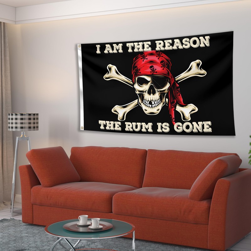 I Am The Reason The Rum Is Gone Flag – Jolly Roger Flag – Pirate Funny Flag – 110Den polyester - Double-side Print - 2 brass eyelets, large 5ft x 3ft