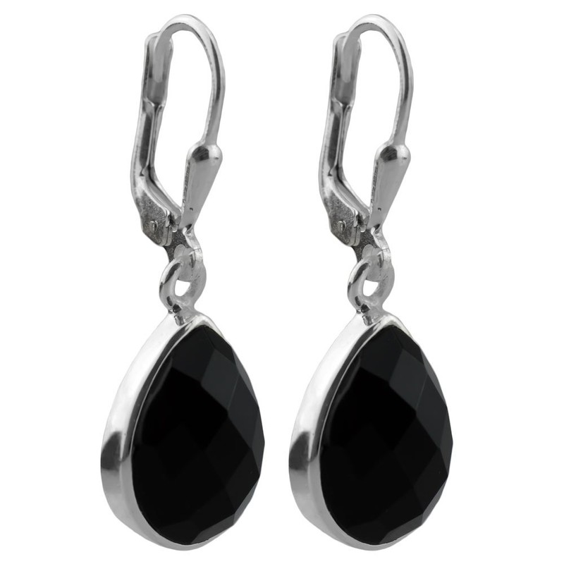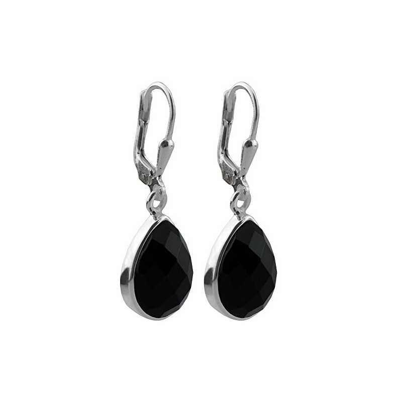 I-be, 394424 k KB Black Onyx Gemstone Drop Earrings Faceted 925 Silver Length 3 cm in Gift Box, Sterling Silver, Onyx