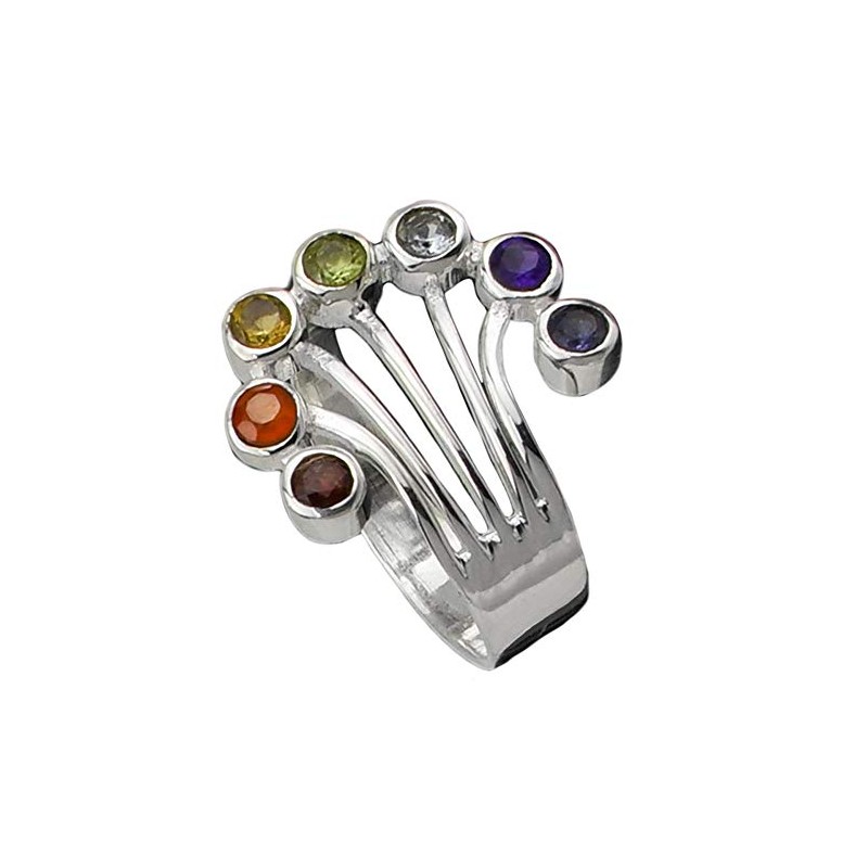 Simple yet so effective: finger ring with 7 real gemstones (amethyst, iolite, carnelian, garnet, citrine, peridot, blue topaz) made of 925 sterling silver. Matches any outfit and can be combined with all earrings, stud earrings, necklaces and bracelets with gemstones or silver jewellery.