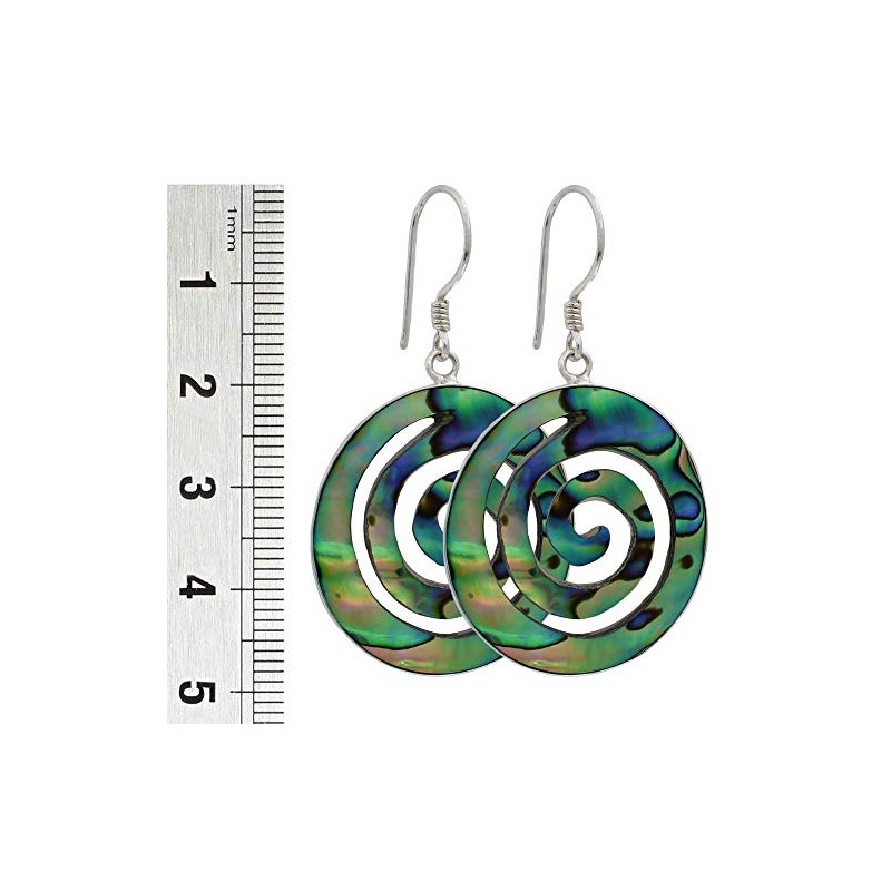 I-be, Paua Shell Abalone Earrings Round with Spiral 925 Silver 398201 Spiral, Sterling Silver