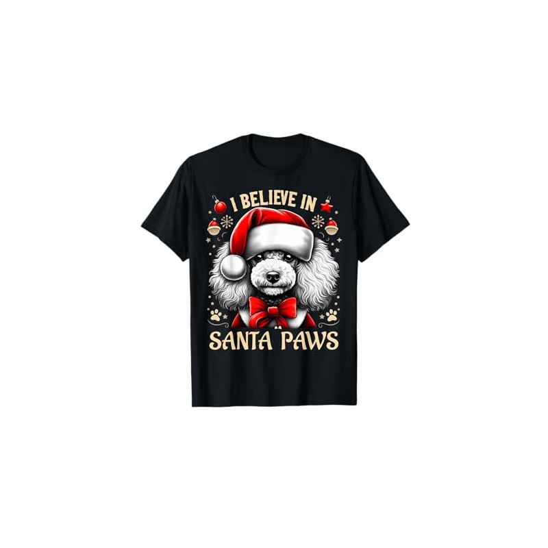 I Believe In Santa Paws Poodle Cute Christmas Owner Lover T-Shirt