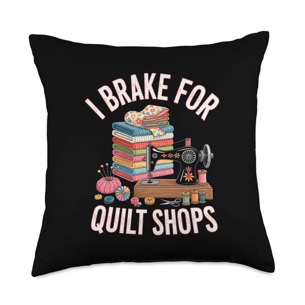 I Brake For Quilt Shops Funny Quilting Quilter Throw Pillow