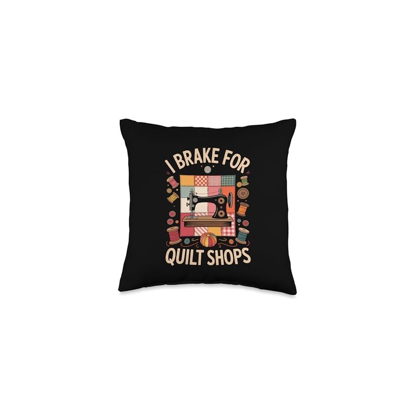 I Brake For Quilt Shops Funny Quilting Sewing Machine Throw Pillow