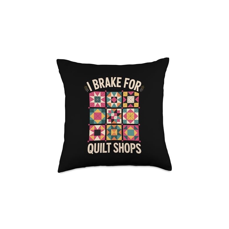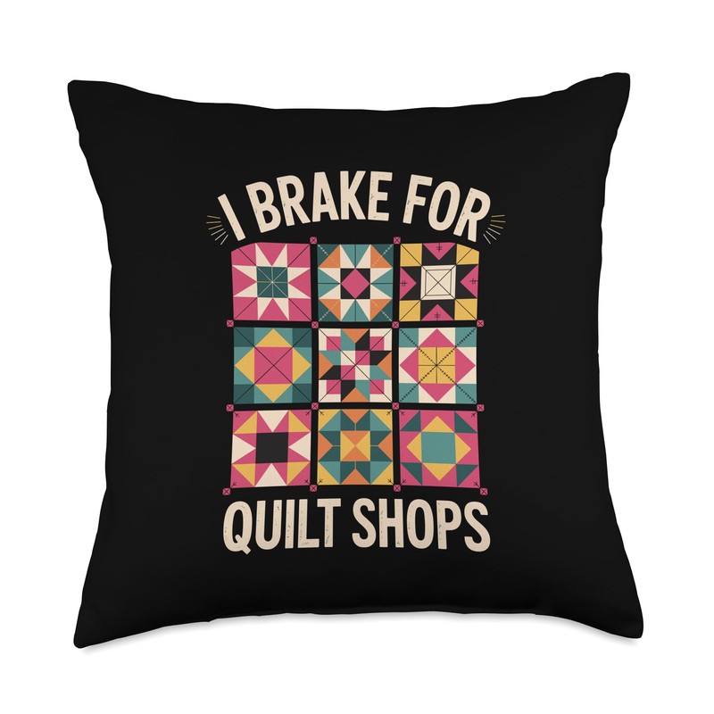 I Brake For Quilt Shops Quilter Funny Quilting Throw Pillow