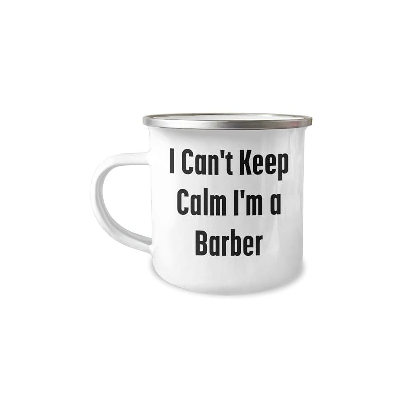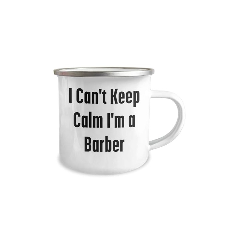 - Give the gift of barber pride with our I Can't Keep Calm I'm A Barber Camping Mug, perfect for Christmas, anniversaries, or any special occasion. The 12 oz capacity is perfect for your morning coffee or tea, and the stainless steel with enamel finish is sturdy and easy to clean. This mug is a thoughtful gift for anyone who loves barbering.