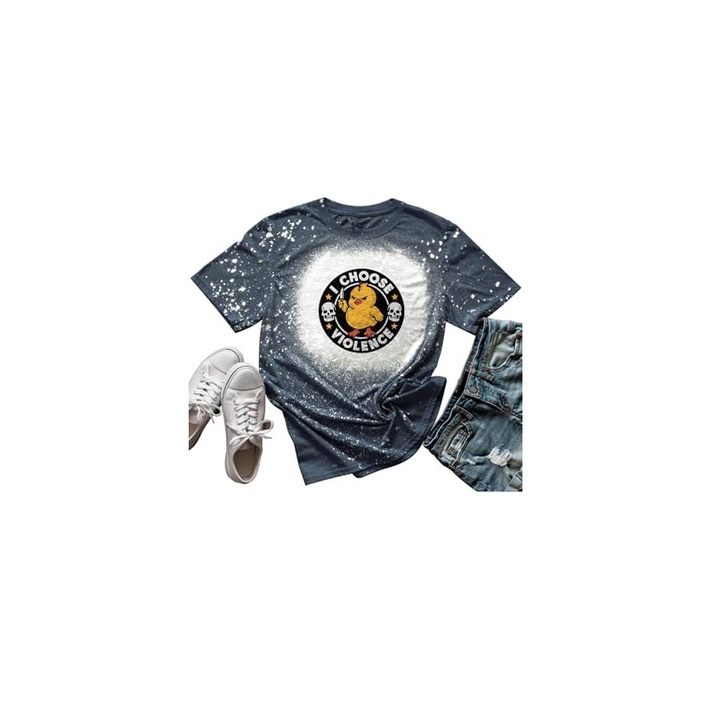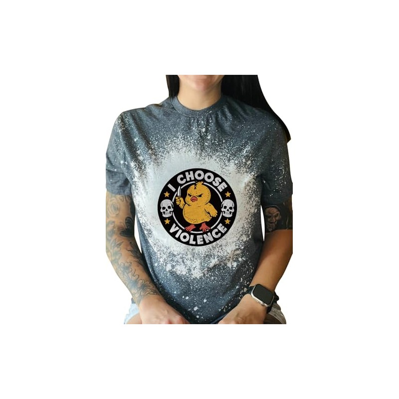 I Choose Violence Funny Baby Chicken Bleached Short Sleeve Shirts for Women Comfy