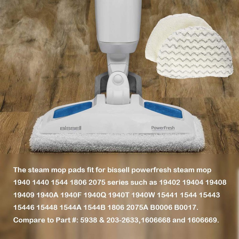 - Fit Model: The steam mop pads fit for bissell powerfresh steam mop 1940 1440 1544 1806 2075 series such as 19402 19404 19408 19409 1940A 1940F 1940Q 1940T 1940W 15441 1544 15443 15446 15448 1544A 1544B 1806 2075A B0006 B0017. Compare to Part #: 5938 & 203-2633,1606668 and 1606669.