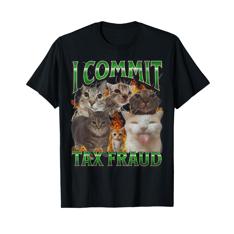 I Commit Tax Fraud Funny Cat Meme Bootleg Graphic T-Shirt