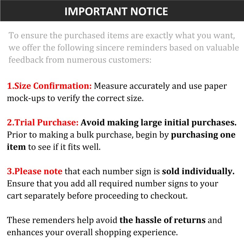 ◎ CLEAR AND CONCISE - Measuring 20cm in length and 30cm in width, this Numbered Sign is designed to be clear and concise.