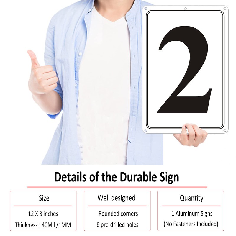 - 【VERSATILE】 Suitable for use in a variety of outdoor settings, including parking lots, this numbered signage "2" is perfect for providing clear and concise directions to customers, visitors, and employees.