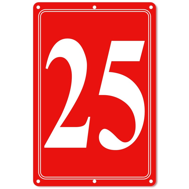 i-CowFun Premium Aluminum Number Signs 25, Metal 12" X 8" Red Numbered Signs Outdoor for Parking Lots, Floor, Dock, Court, Aisle, Field, High Visibility, No Fade, Weather-resistant