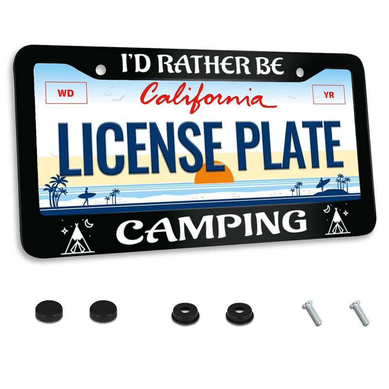 I'd Rather Be Camping License Plate Frame Funny License Plate Frames for Car Decorative Parts Rustproof License Plate Cover for Standard Us Canada License Plate Holder Unisex 12x6 Inch