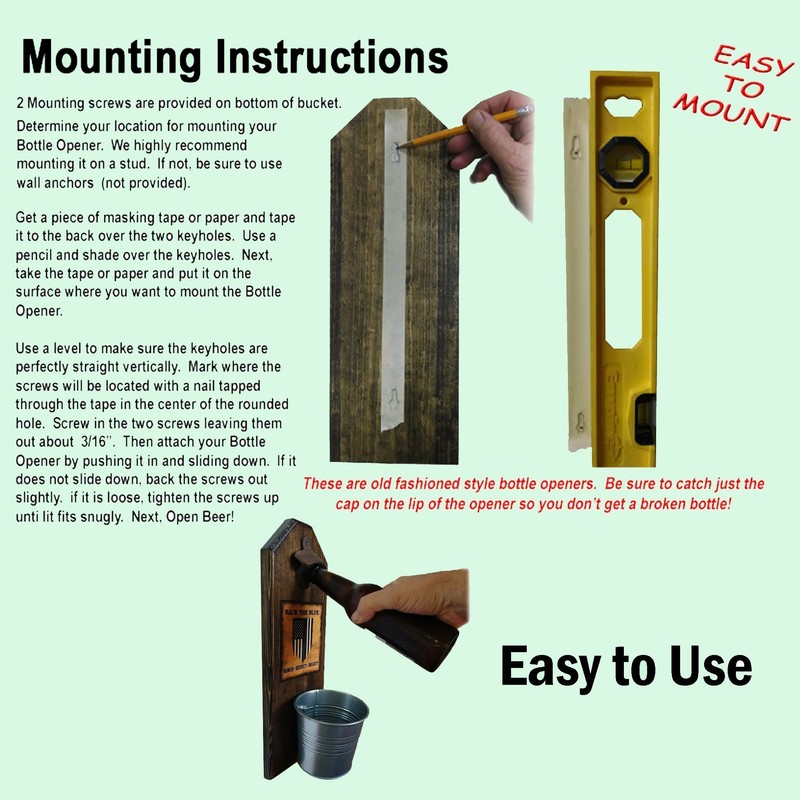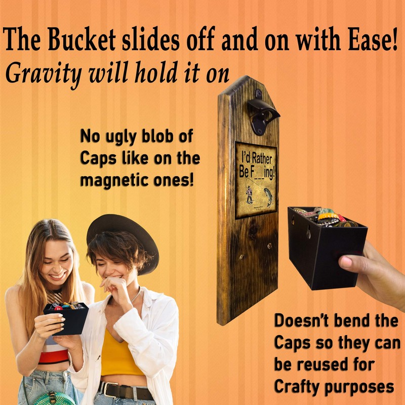 "I'd Rather Be Fishing" Bottle Opener and Cap Catcher. Handcrafted by a Vet. 100% Solid Pine 3/4" Thick - Rustic Cast Iron Bottle Opener & Galvanized Bucket - Great Gift! (for your beer!)
