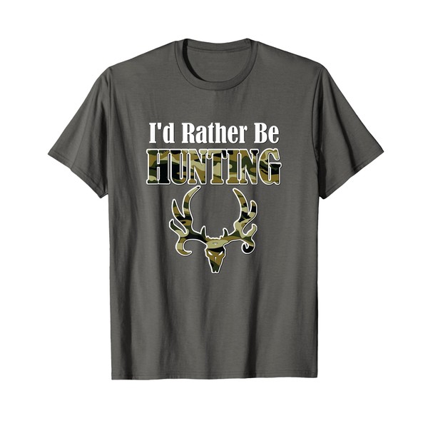 - Funny hunting quote saying for men women teen boys girls says I'd Rather Be Hunting with buck deer skull antler trophy art graphic in classic green black camo camouflage colors, funny hunting gift for hunter dad mom kid who loves deer hunting.