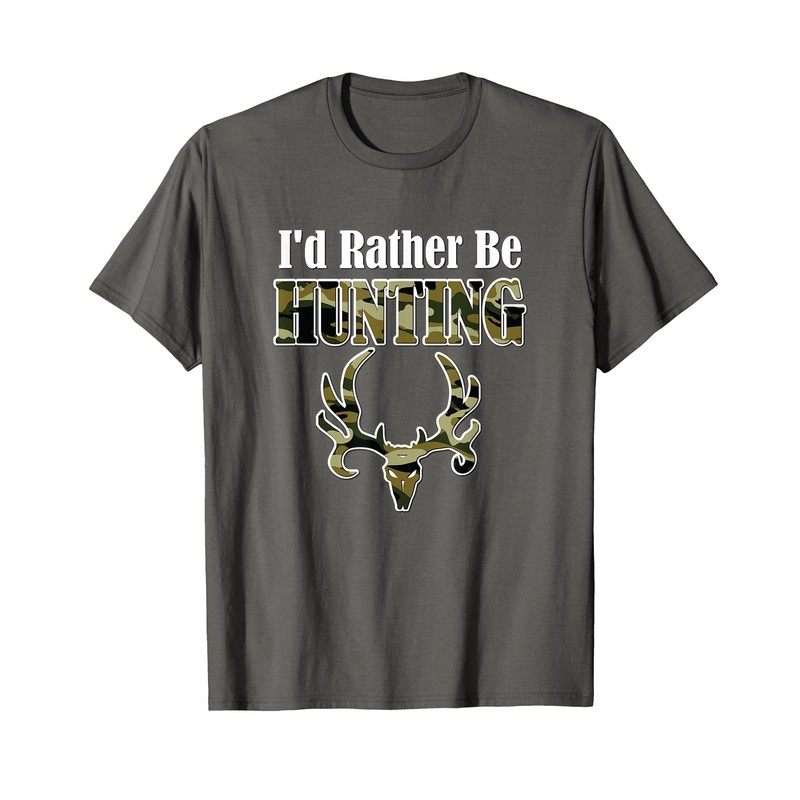 I'D RATHER BE HUNTING Funny Hunter Camo Deer Skull Antlers T-Shirt