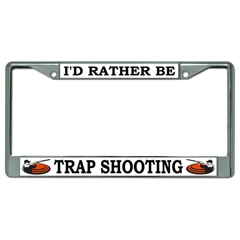 I'd Rather Be Trap Shooting Chrome License Plate Frame