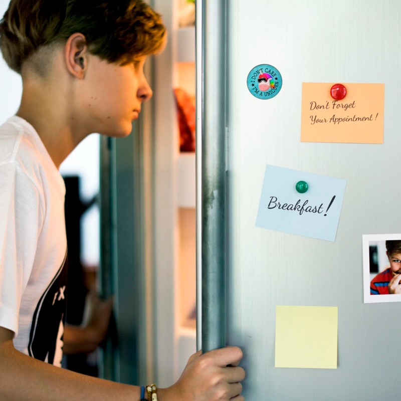 - Fridge magnets have been around for a long time. With the practical magnets, various things can be easily attached to the fridge, such as photos or postcards that decorate the fridge. This fun magnet stands out from other boring magnets thanks to the special motif.
