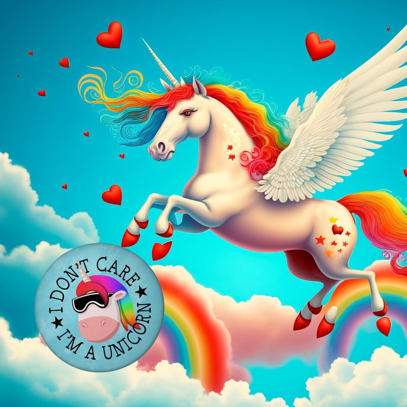 - The magnet features a funny unicorn with sunglasses. The saying reads: I don't care i'm a unicorn. The background is blue