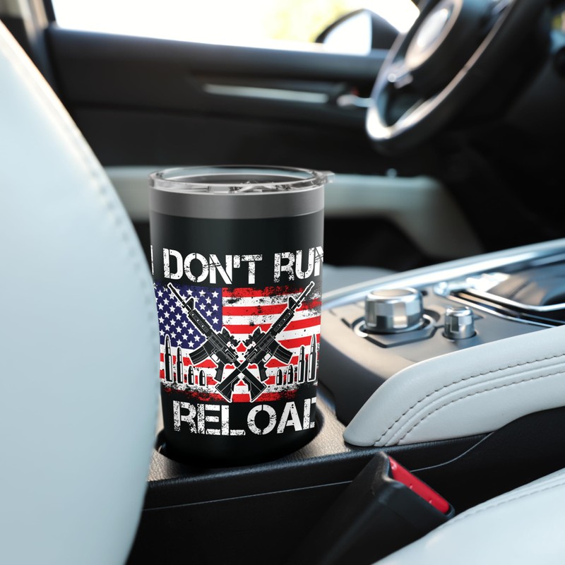 I Don't Run I Reload, US Flag For A Patriotic Gun Lover Stainless Steel Insulated Tumbler