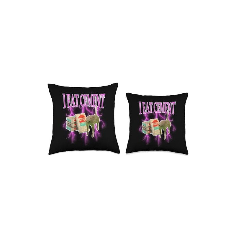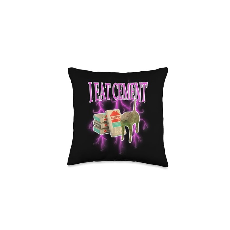 I Eat Cement Cursed Funny Meme Cat Trend Sarcastic Meme Throw Pillow