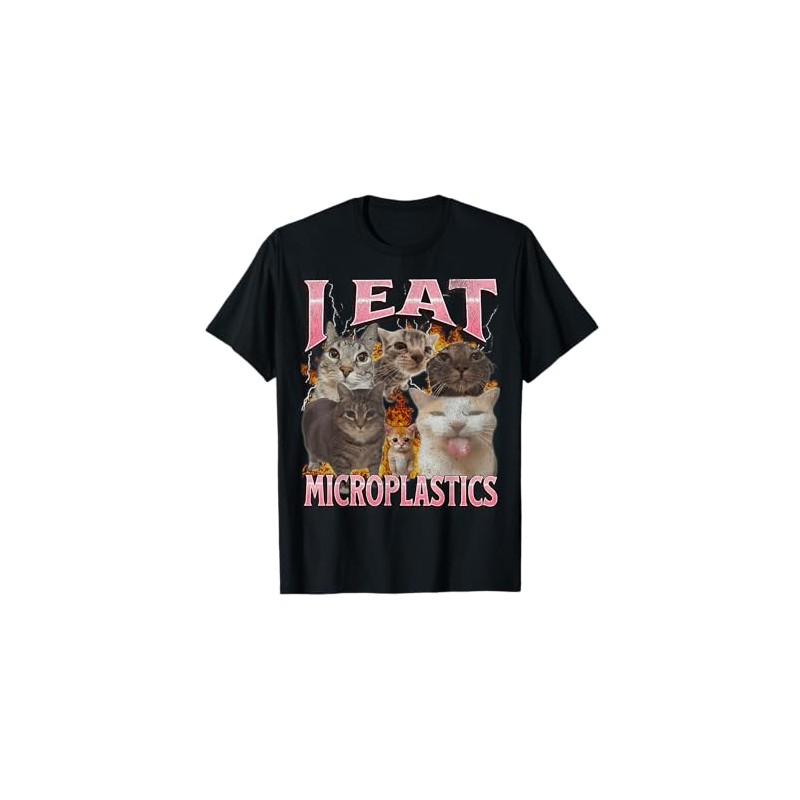 I Eat Microplastics Funny Cat Meme Bootleg Graphic T-Shirt