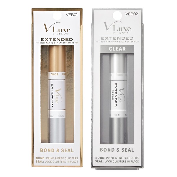 Introducing the V-LUXE Extended Bond & Seal, an innovative dual-head lash adhesive designed to revolutionize your eyelash extension experience. This unique product features two distinct functions in one sleek package: a bond to prime and prep your natural lashes and a seal to securely lock lash clusters in place. The bonding side starts your lash application off right with a crystal-clear formula that primes your lashes without leaving any white residue, creating the perfect foundation for extensions. Following up, the sealing side ensures that your lash clusters are locked in position with a robust and durable hold, providing peace of mind throughout the day. Crafted with non-damaging ingredients, the V-LUXE Extended adhesive respects the natural health of your lashes while offering a waterproof and long-lasting performance. Whether you're facing a long day at work or a night out in challenging weather, your lashes will look flawless and intact. Perfect for those seeking a light and clean extension look, this product simplifies the lash application process, allowing for a seamless and efficient experience. The dual-head design not only saves time but also enhances the overall quality and durability of your lash extensions. Elevate your beauty routine with the V-LUXE Extended Bond & Seal, where innovation meets practicality and style in lash care.