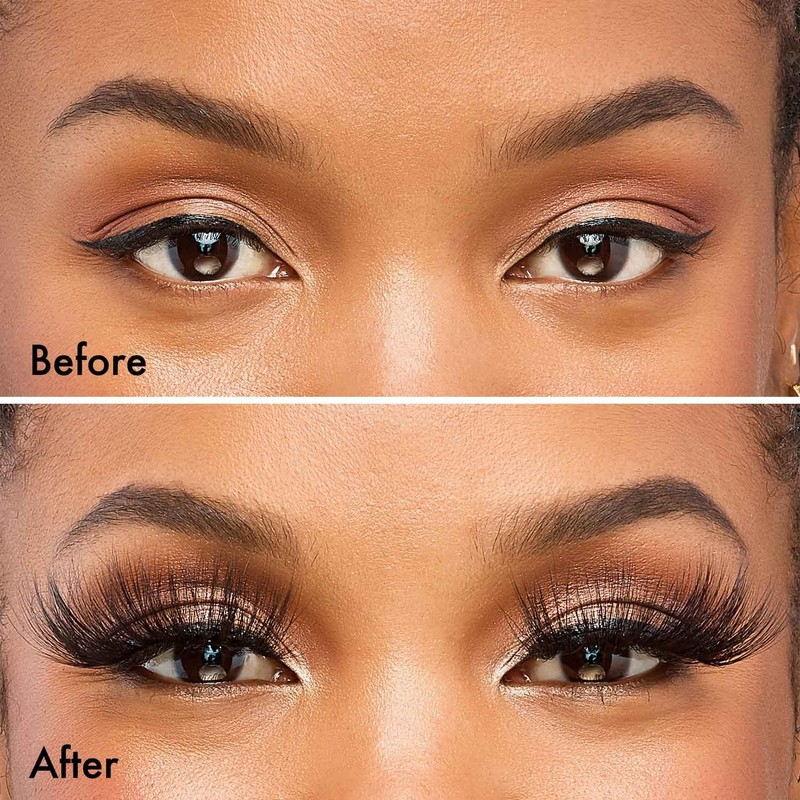 - Always remember to check fit. Lay eyelash on top of your natural lashes and trim if needed.