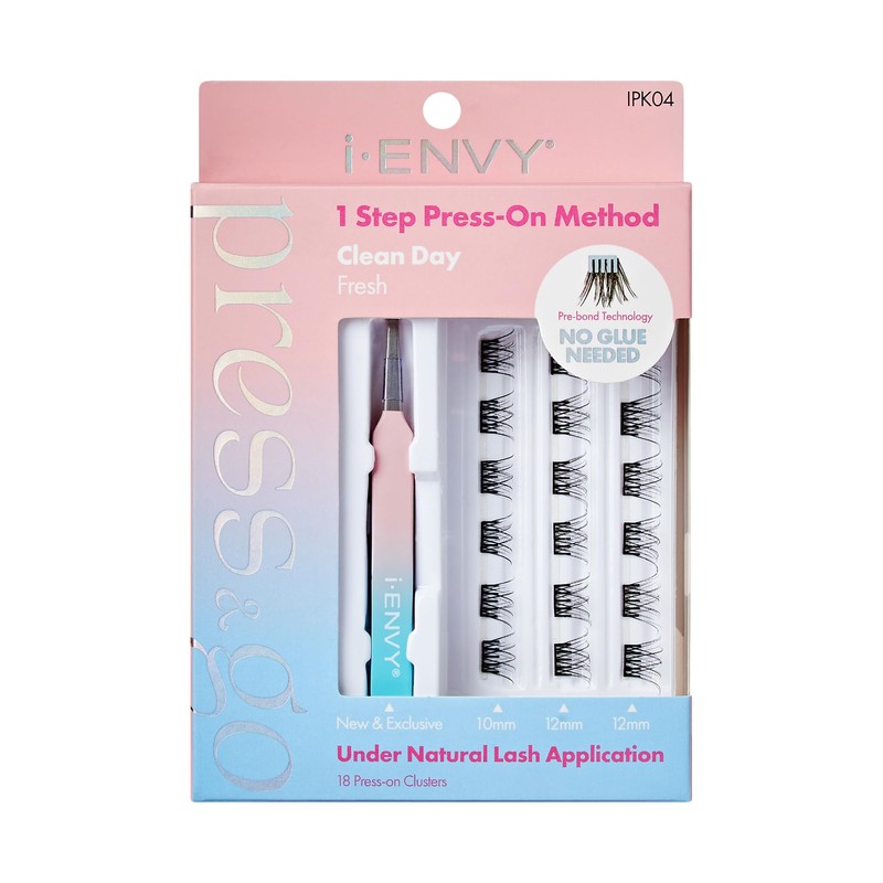 i-ENVY Press&Go Self Adhesive Eyelashes and Applicator Kit, No Glue False Eyelash Clusters, Easy Application 1 Step Press-On Lashes, No Damage or Residue (Clean Day Fresh)