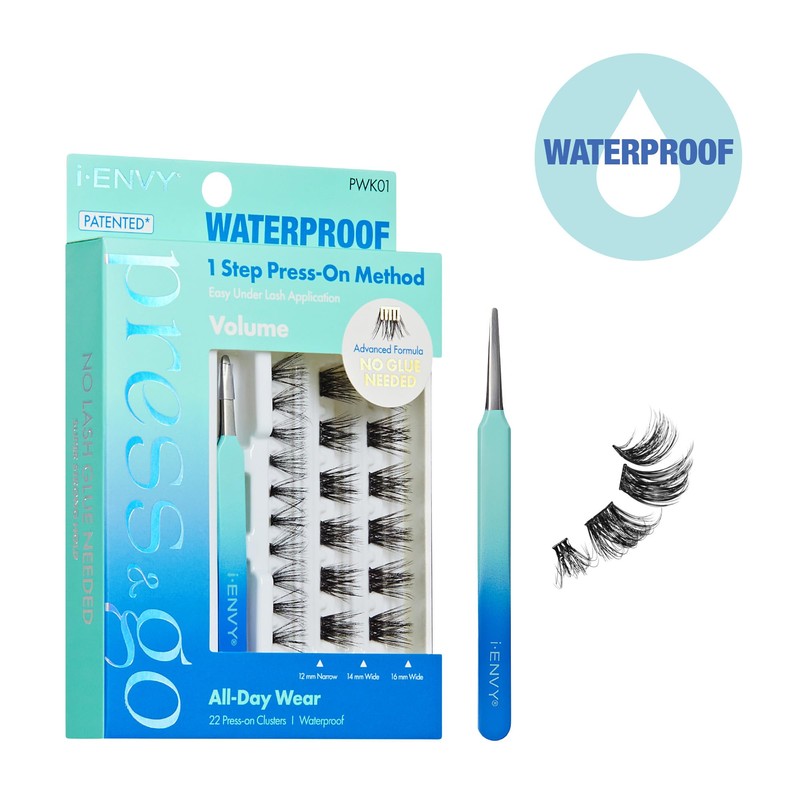 i-ENVY Press&Go Waterproof Self-Adhesive Eyelashes, No Glue Needed 22 False Lash Clusters, Reusable 1 Step Press-On Lashes, No Damage or Residue (Waterproof Volume With Applicator Kit)
