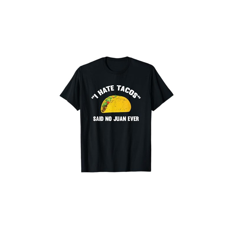- This funny distressed vintage food tee shirt says "I Hate Tacos Said No Juan Ever" and features a yummy looking taco. Perfect for Mexican food truck lovers. Make Pinata Great Again!
