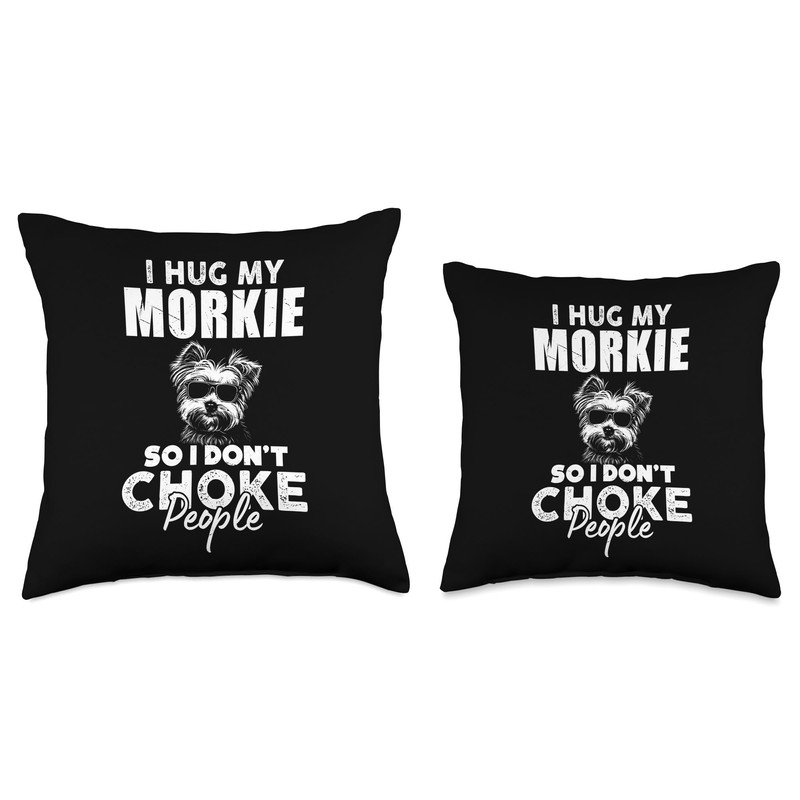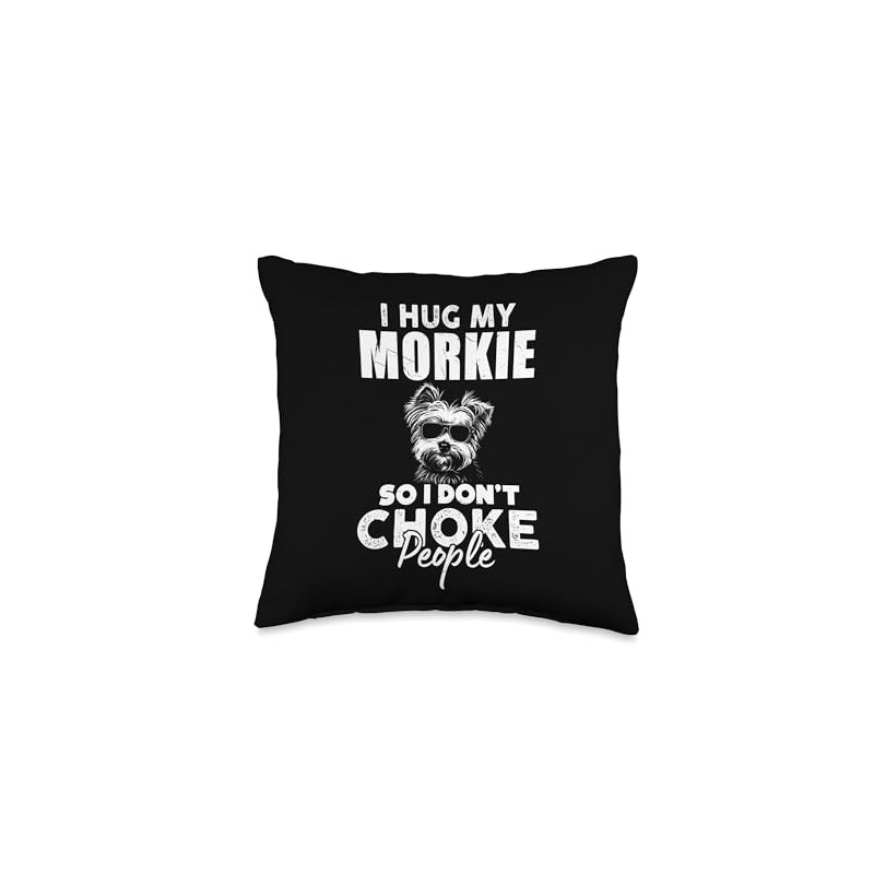 I Hug My Morkie So I Dont Choke People Funny Morkie Dog Xmas Throw Pillow