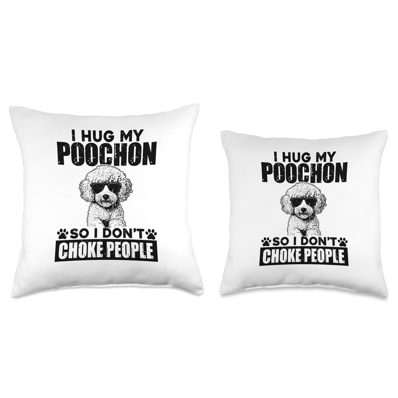 I Hug My Poochon So I Dont Choke People Funny Dog Pet Lovers Throw Pillow