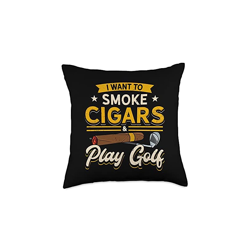 I Just Want To Smoke Cigars And Play Golf Cigar Smokers Throw Pillow