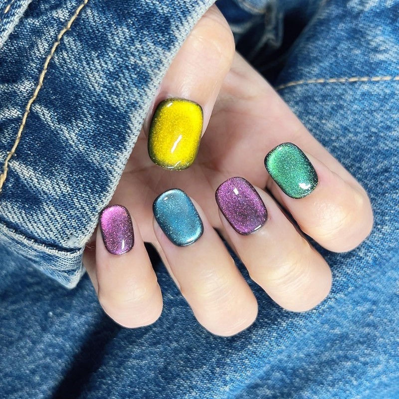 i-Laesh Handmade Cat-eye Nails Luxury Oval Press On Nails - Short Round Style...