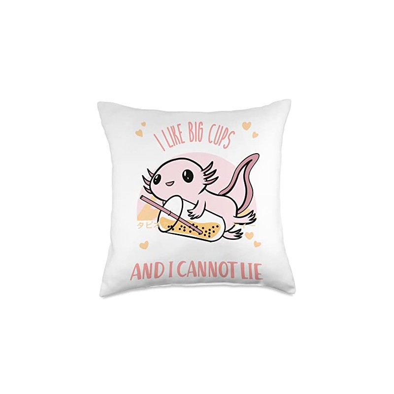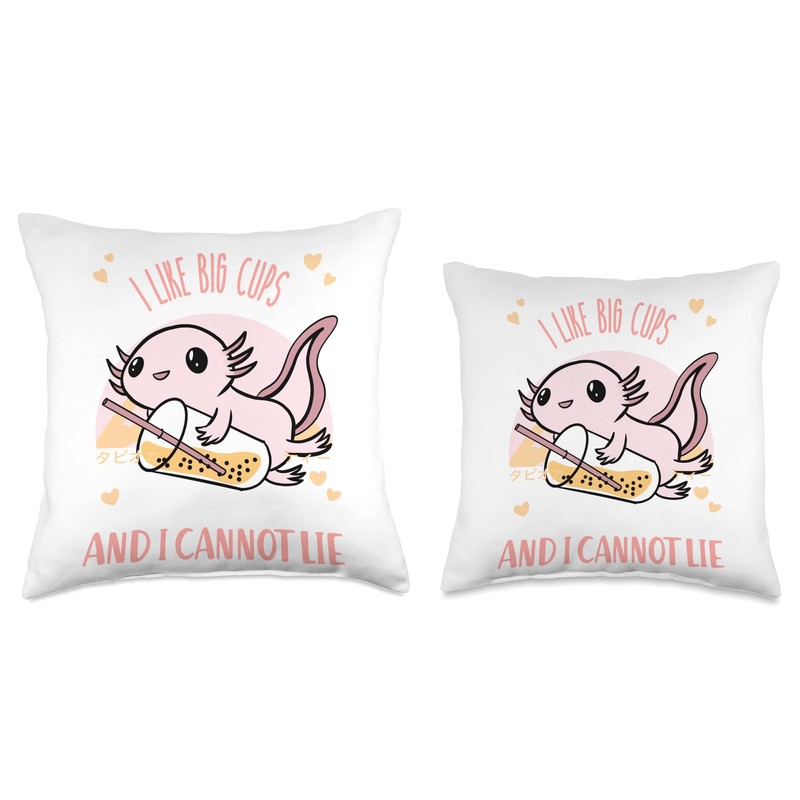 I Like Big Cups and I Cannot Lie Funny Kawaii Axolotl Throw Pillow