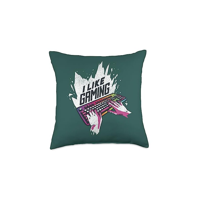 I like gaming Keyboard PC Gamer Video Game Cute Cool Retro Throw Pillow, 18x18, Multicolor