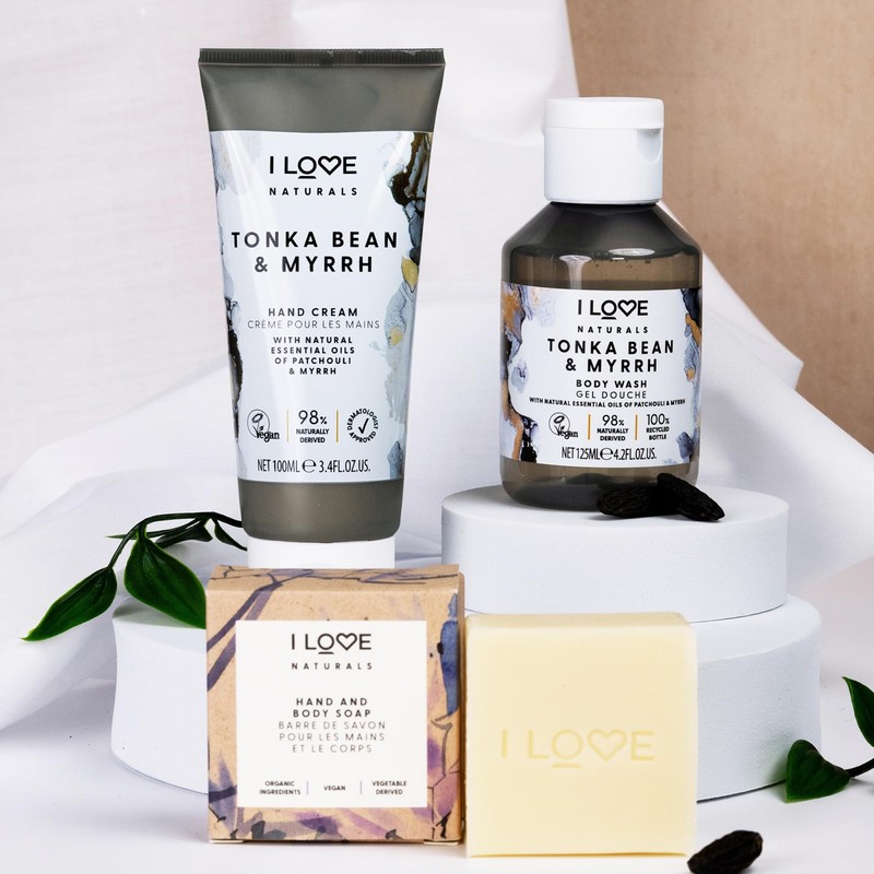 I Love Cosmetics Naturals Hand Cream - Rose and Argan, Tonka Bean and Myrrh, ...